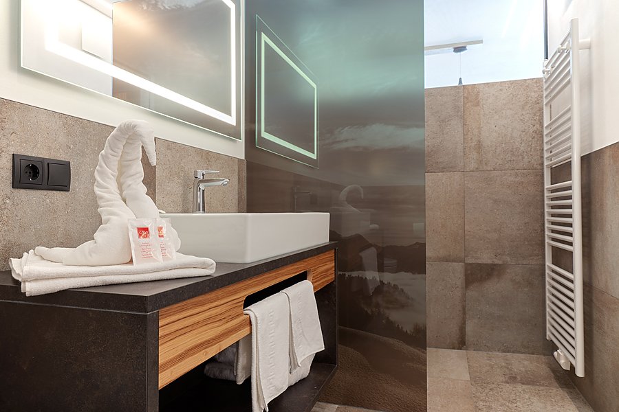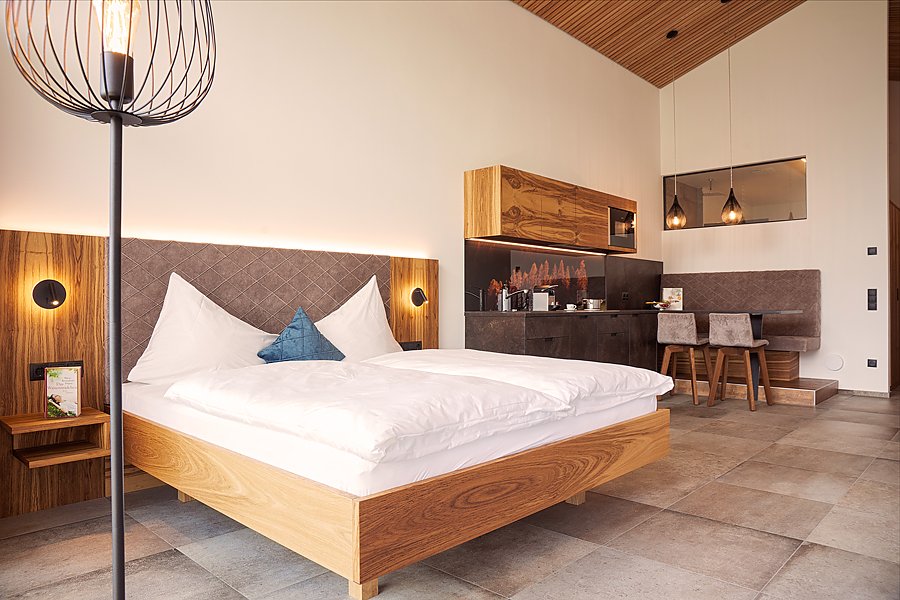 Appartamento con balcone, angolo lettura, vista lago, riscaldamento a pavimento, ventilazione controllata, angolo di cottura (2 piastre), bollitore, macchinetta per il caffè, lavastoviglie, mikrogrill, frigo con congelatore, tavola da pranzo, “servizio pane fresco“, guardaroba, cassaforte, bagno con doccia, WC e fon, TV satellitare, Wi-Fi gratuito, biancheria da letto e asciugamani, accappatoi, accesso gratuito all’area sauna.